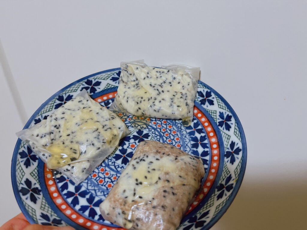 上のは抹茶味で…こちらは黒ゴマ味です。