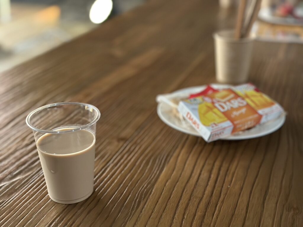 ウェルカムドリンクのミルクティーは、乾燥していたSの喉に沁み渡りました笑
